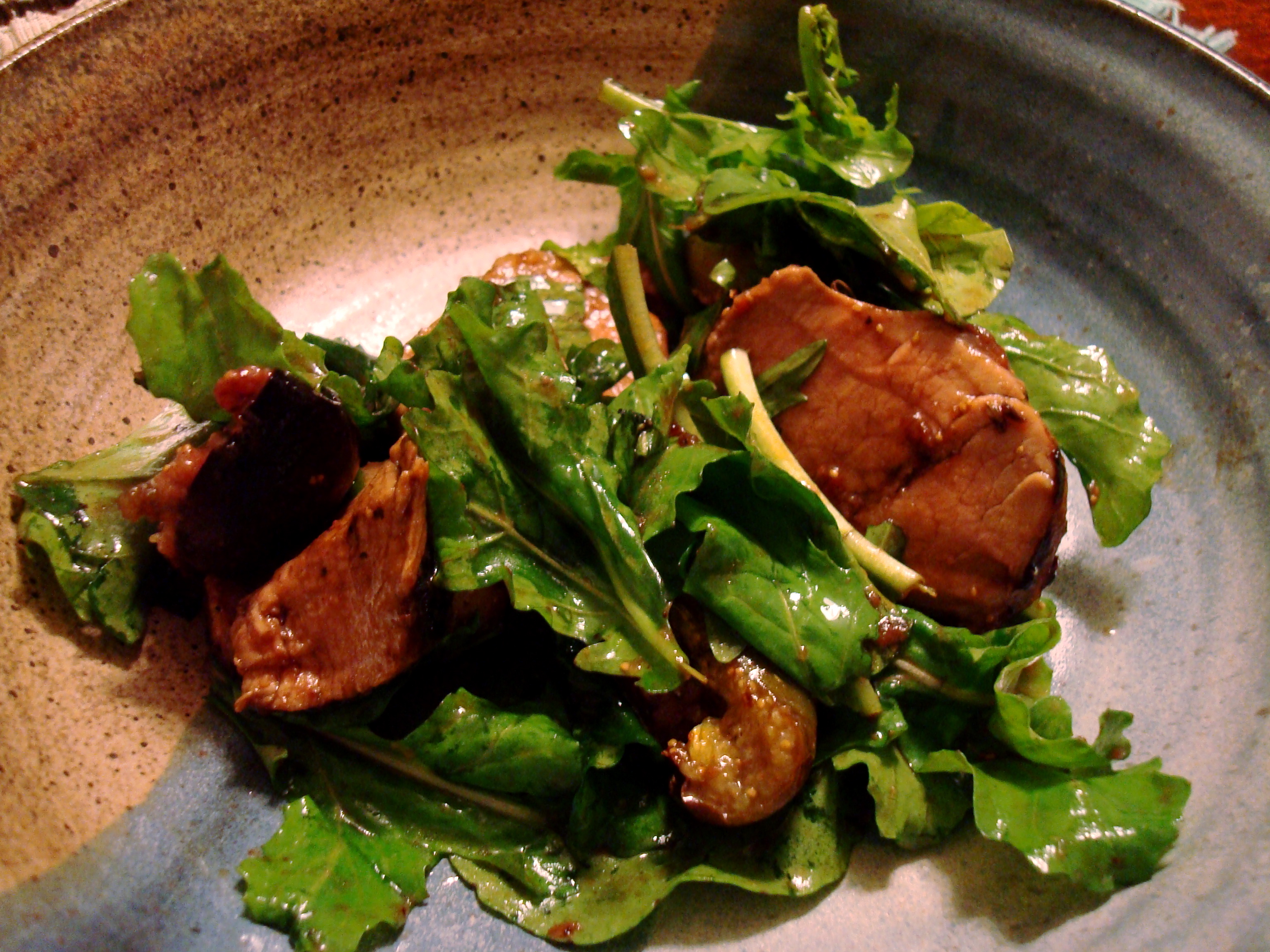 Quince, Pork Tenderloin, Fennel-crusted Broiled Fig Salad on Arugula.