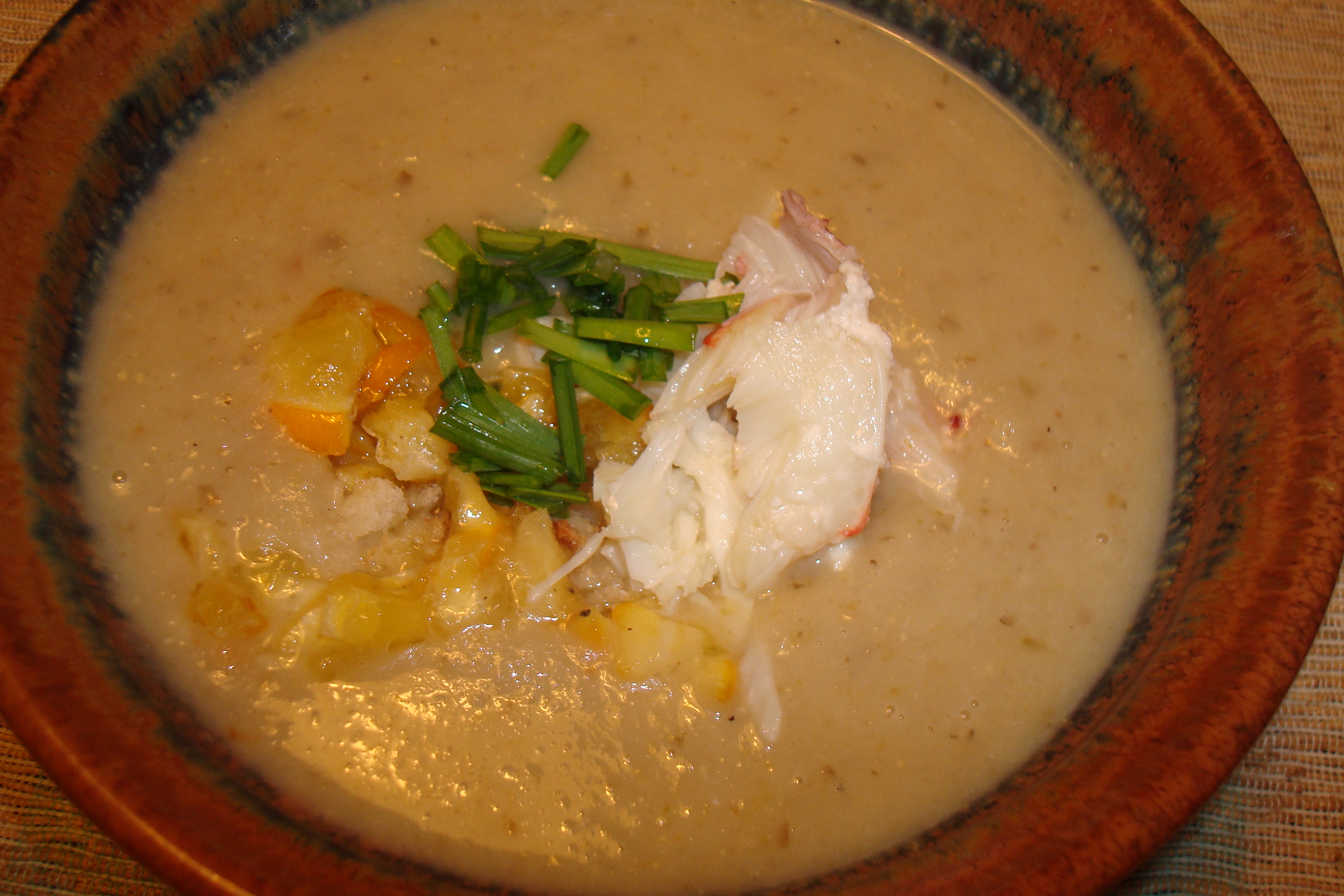 Delicate Jersusalem Artichoke-Meyer Lemon-Dungeness Crab Soup
