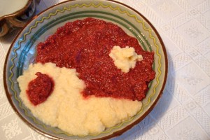 I’m so grateful for the burst of feathery, licoricey, green tarragon that’s sprung up in the garden. But at the same time I regret pulling up the horseradish root I planted. I feared the thriving thing would take over the garden. But had I let it overwinter, I would have had fresh horseradish this week. It was in short supply at the farmer’s market and food co-op. Luckily, I obtained enough to blend up some with cooked beets, vinegar, salt and sugar to make some festive horseradish to go with my salmon gefilte fish. It was especially a hit at the eclectic seder Slow Food Corvallis leader Ann Shriver and ag economist Larry Lev hosted Friday night. Now I have to see about digging up some horseradish from someone. I think the solution is to grow it in a barrel container, as I plan to do with potatoes, so the invasive root doesn’t overtake your bed. Here’s a helpful article on growing and cooking with horseradish, by garden writer Anne Raver, who I believe is based in Maryland’s Carroll County, where I worked for The Sun. She recommends grinding the root outside to cut down on its pungent mustard oil fumes. It made Dan and I choke and tear up when I went at ours indoors.