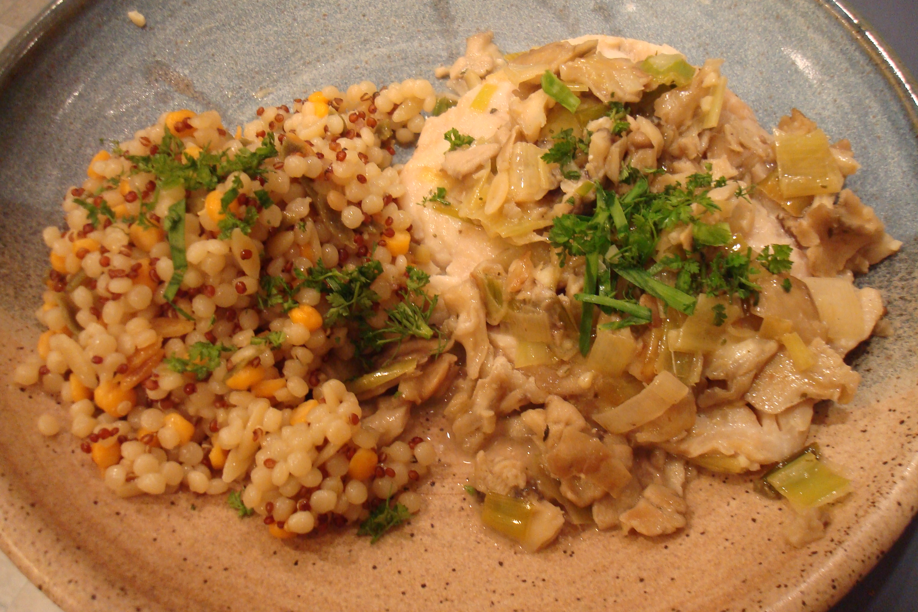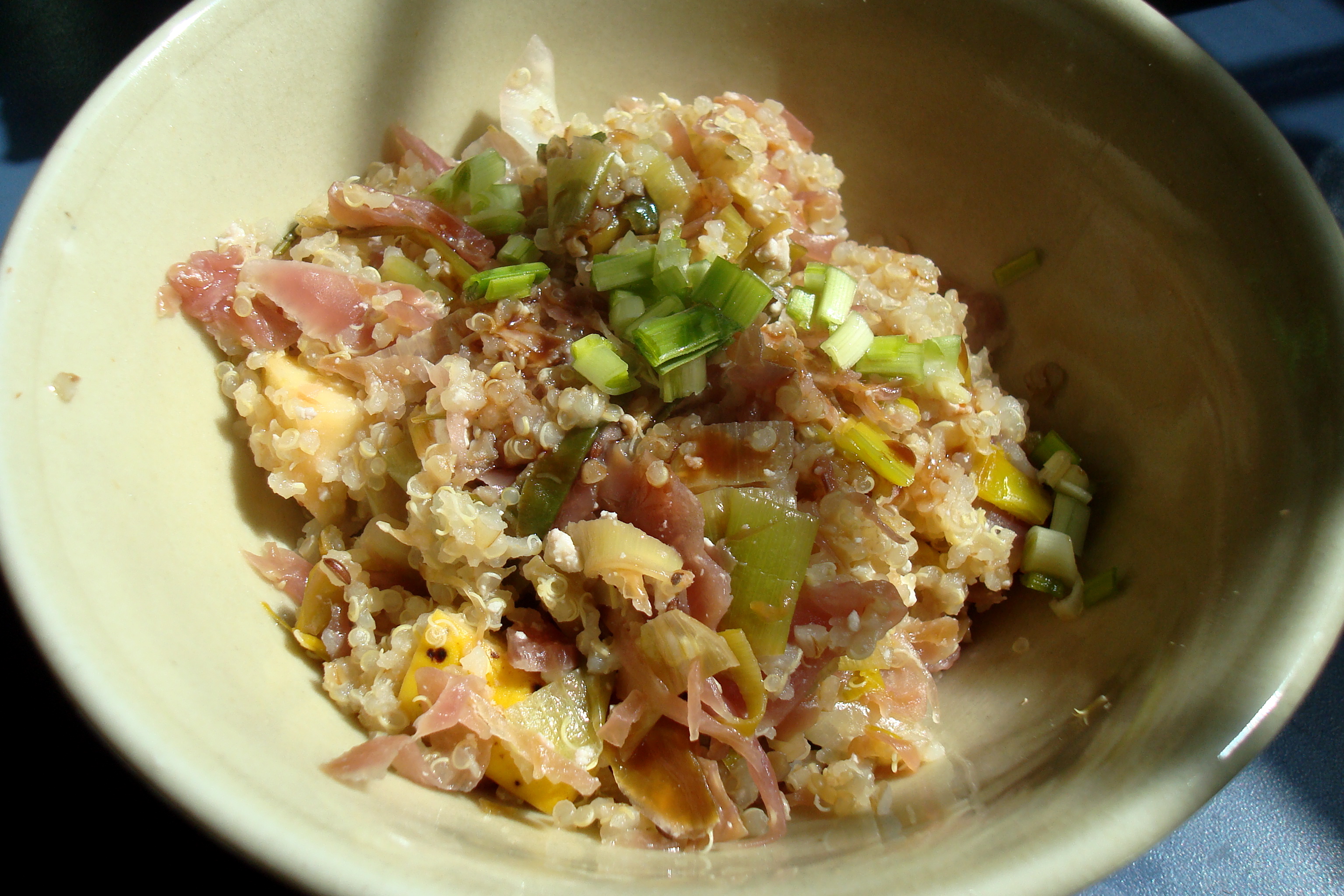 Bulgur-Quinoa with Sauteed Leeks, Apples and Kraut