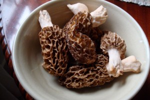 Because morels are the most tempting wild mushroom now in season, Bhide’s Morel Pulao with Cashews grabbed me. I’ve made it twice now, both times without the exact ingredients on hand. I substituted sauteed chanterelle duxelles for the morels the first time and used fresh ones this second time. Didn’t have paneer on hand to use either time, and I had trouble “stuffing” the morels without causing them to crumble. Still, this aromatic, flexible basmati rice dish makes an excellent side or even main dish with a salad. Sauteeing the cardamom, cinnamon stick, bay leaves, grated onion and ground cashews together creates quite a comforting perfume. This is delicate Indian comfort food. The recipe is also less complicated than it sounds. Maybe next I’ll tackle South Indian masala dosas, with their fermented crepe batter. But for now, a rice pulao is a nice place to start. Click below for the recipe.