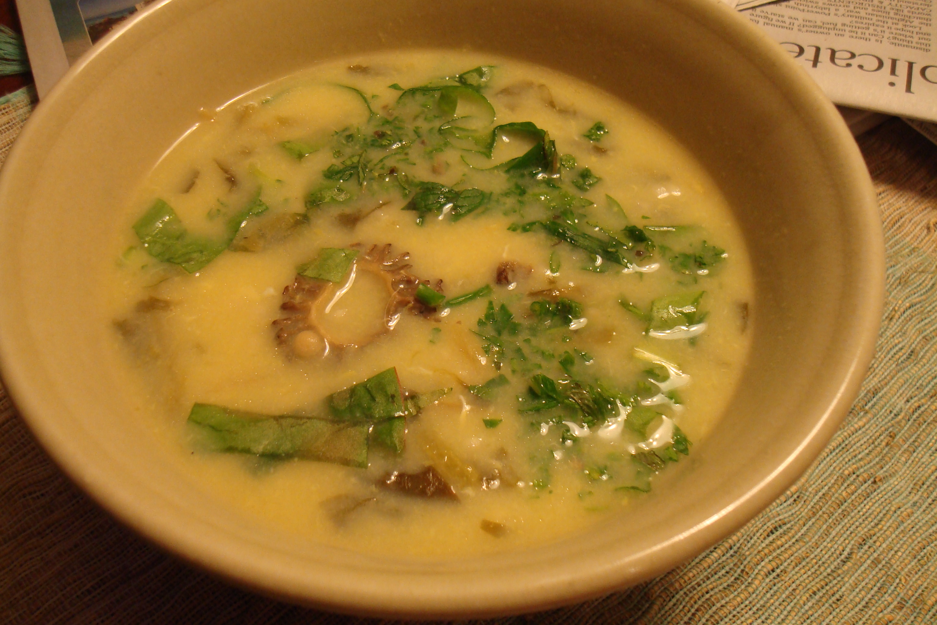 Greek Avgolemono (Egg and Lemon) Soup with Sorrel and Morels