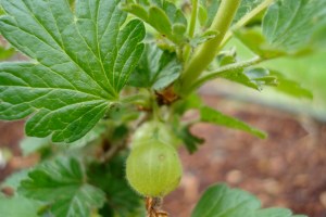 Last summer, let’s just say I didn’t get off to the best start. I bought a hanging strawberry basket that unfortunately dried up, as it got ignored while we were traveling all of July and part of August. I also had two discounted blueberry plants shrivel up when I waited to long to plant them. But a $2 gooseberry from the Habitat for Humanity Restore miraculously survived. It’s only promising about two gooseberries this spring, but that’s a start. Not that I’ve ever cooked with gooseberries. But I hear they make nice pie and jam.