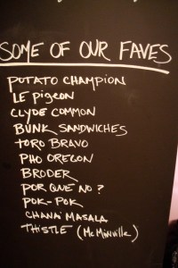 Hopefully this fair-weather, intermittent blogging will become more regular again, now that my spring classes have come to an end. Plus, after one of the rainiest June’s yet, it’s finally sunny in Oregon, so I have no excuse not to write about the bounty finally revealing itself in our gardens and farms. Now we have the al fresco dining scene to look forward to, too, and what defines outdoor eating more than mobile food carts?