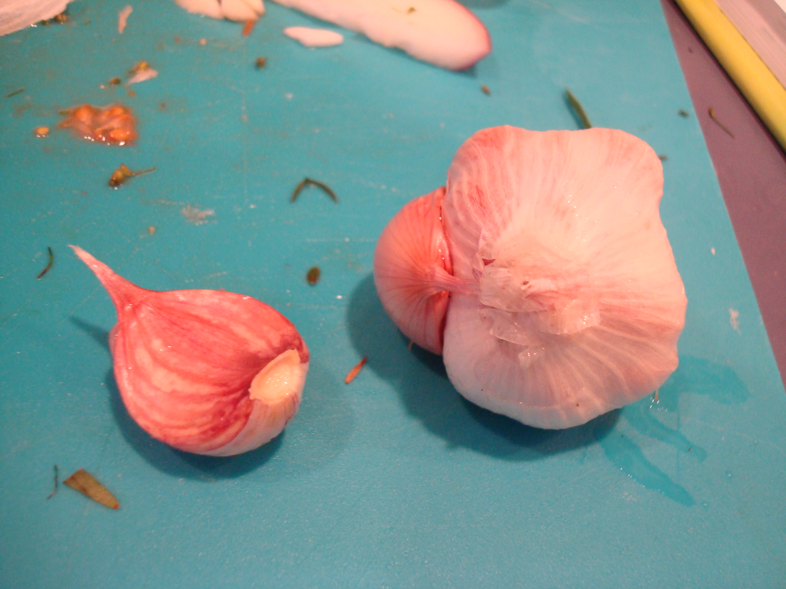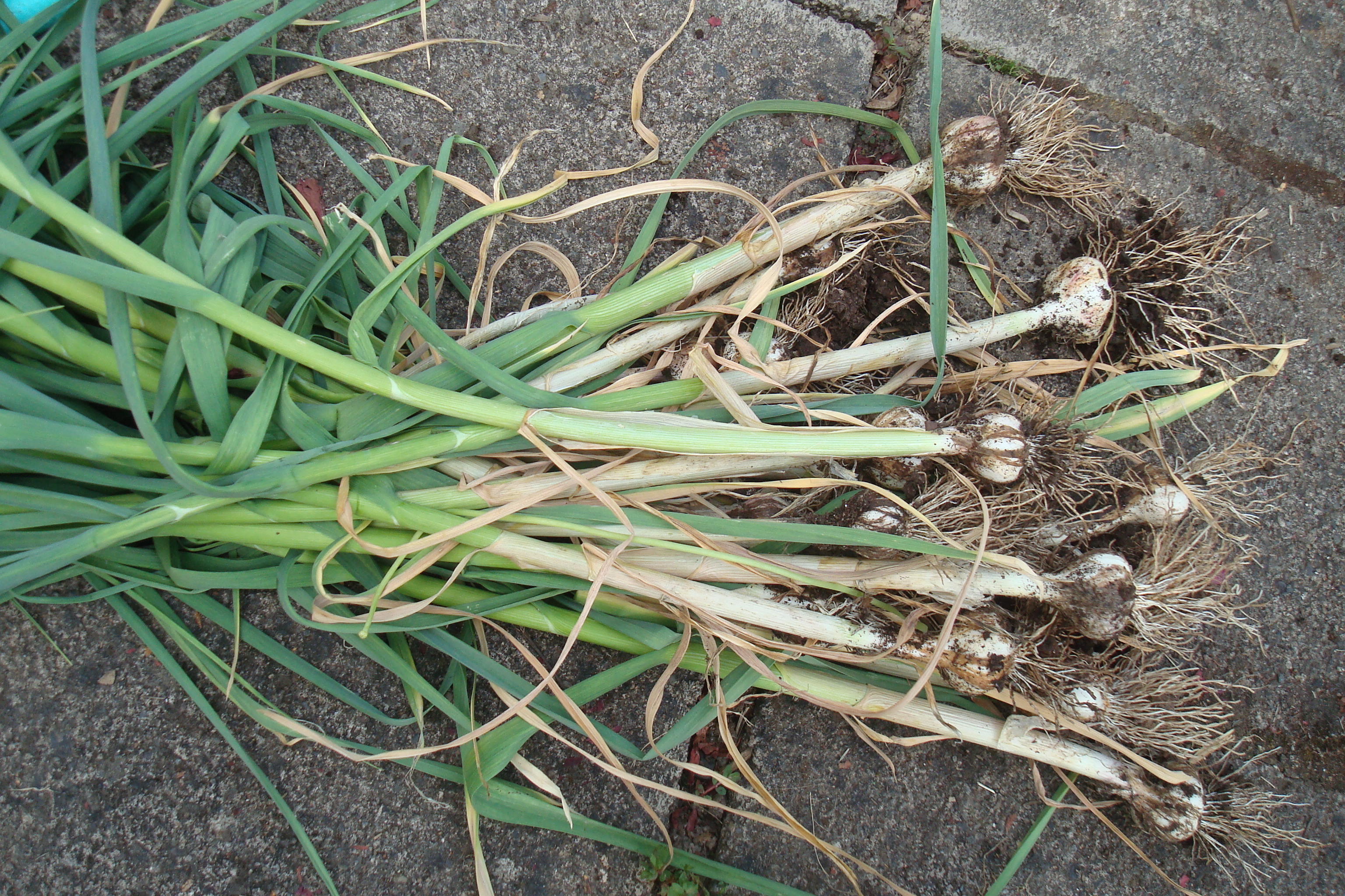 Garlic from the garden, harvested before we left on the 4th of July: delicious, antiseptic medicine.