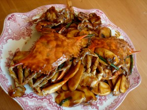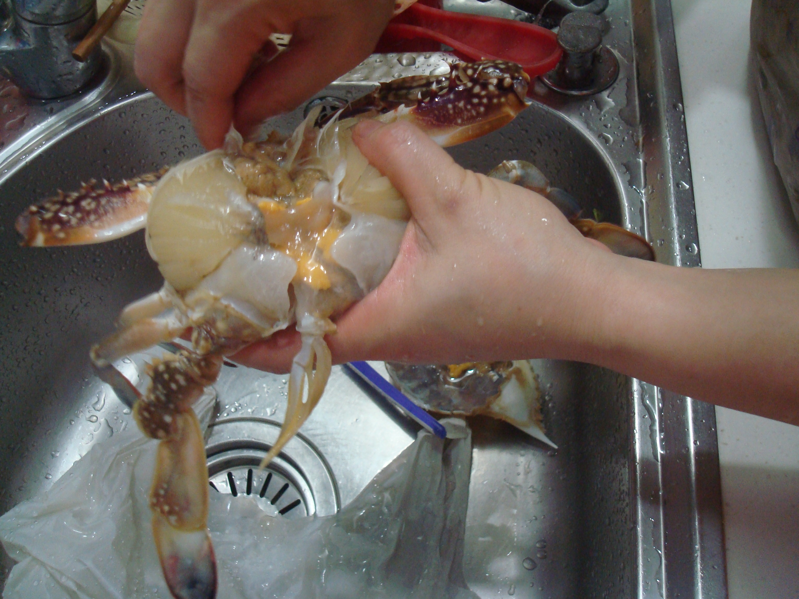 What follows is my attempt at translating Chen Leilei’s recipe. And if you’re squeamish about live crab, try boiling them in salted water for two minutes first before you dismantle them. Just stun them unconscious first (by hitting the head against the cutting board), so they aren’t boiled alive.