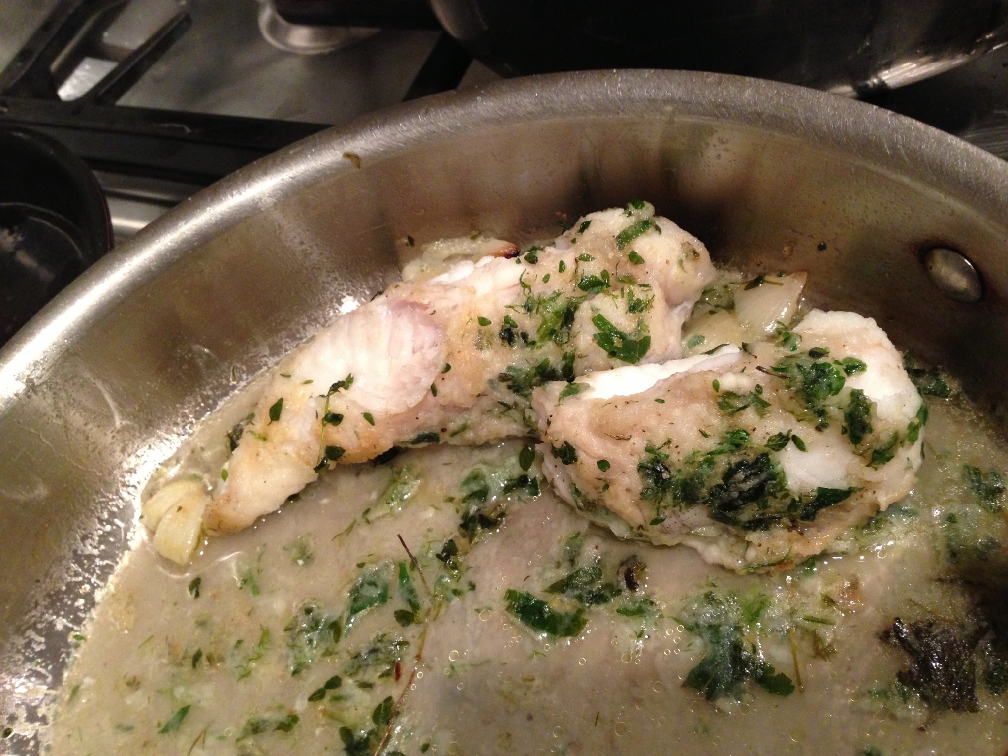 It’s my second September living year-round in Maine, and the access to fresh, affordable seafood is one of the things I’m most grateful for after more than a year here. Of course the produce is incredibly bountiful now, though a chill is setting in. I can barely keep up with our C.S.A. and my neglected community garden plot’s bounty. I’m actually a member of three C.S.A.s at the moment–incredibly indulgent I know, though I believe they are saving us money on food costs if you pencil everything out. In addition to the vegetable C.S.A., I just started John Bunker’s incredible bi-weekly “Out on a Limb” heritage apple C.S.A. program. And on and off for almost a year now I’ve had the privilege of being one of the inaugural members of the Salt & Sea Community-Supported Fishery, which does a weekly drop of fresh-from-the-boat fish and shellfish in Brunswick. I’ve had a chance to cook with some of the freshest fillets of pollock, Acadian redfish (my new favorite…especially pan-fried for fish tacos), haddock, dabs and monkfish you can imagine. Every week, owner Justine Simon emails us a suggested recipe for that week’s fish, which can usually be assembled with ingredients you have on hand. It takes all the guesswork out of coming up with dinner and then procuring those items. Effortless, delicious fish dinner!