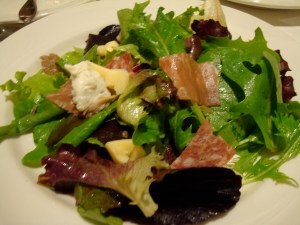 Though last year’s black truffle and gnocchi appetizer was more memorable, it was incredible in the salad tonight how refrigerating the salami and cheese with truffles allows the oils in the fat of the meat and cheese to absorb the fungi’s pungent aroma over a period of weeks. That’s the same process folks use to infuse butter or even eggs (through the shell!) with a truffle’s essence.