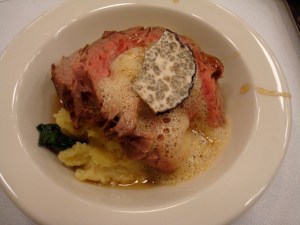 Though last year’s black truffle and gnocchi appetizer was more memorable, it was incredible in the salad tonight how refrigerating the salami and cheese with truffles allows the oils in the fat of the meat and cheese to absorb the fungi’s pungent aroma over a period of weeks. That’s the same process folks use to infuse butter or even eggs (through the shell!) with a truffle’s essence.