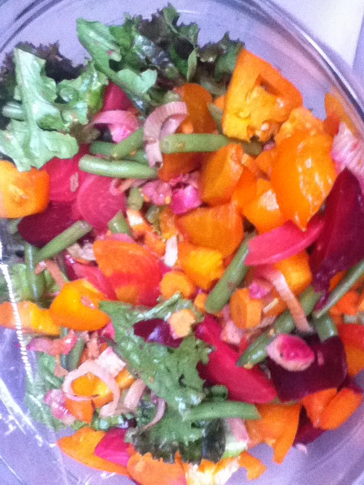 I’ve been falling in love with salads again as I frantically try to cook up the summer’s bounty before the chill sets in here in Maine. In Oregon and here, September is prime salad-making time. You’ve got just about every fresh, locally-grown vegetable at your disposal.